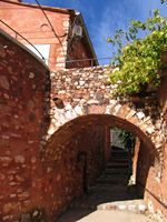 En parcourant ses ruelles et ses escaliers, en contemplant ses façades, souvent simples et naturellement belles, on admire le résultat de savoir-faire plus que millénaire. Ici l'homme a su spontanément se fondre dans la splendeur d'une nature généreuse. L'ocre est partout : dans les paysages que l'on ne peut oublier, sur les murs des maisons, enduites de façon traditionnelle, mais aussi dans le cœur des hommes, que le précieux pigment a fait vivre jusqu'au milieu du 20ème siècle.